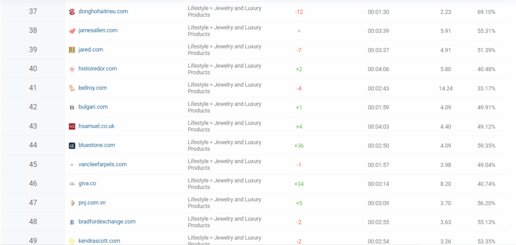 Also, based on Nov.2022 online website visitors (Traffic) Ranking, here are the TOP 50 Luxury Jewelry Companies for your reference.