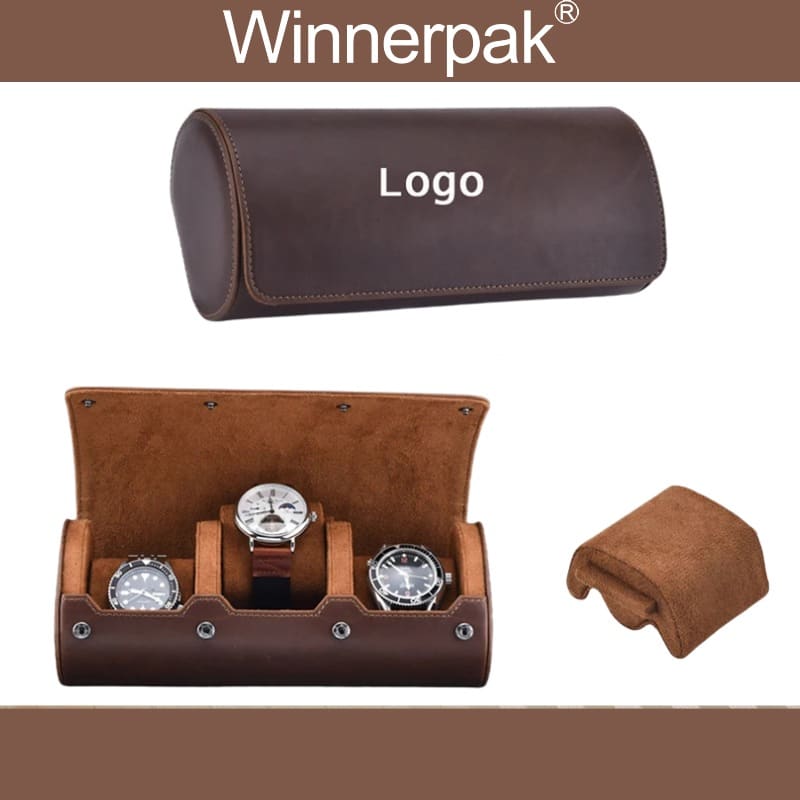 Genuine Leather Watch Case: For luxury brands, we offer full grain leather watch roll upgrades that develop a lovely patina with time.