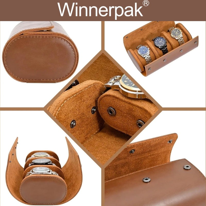 A: Yes. This leatherette watch roll’s casing design stresses safety. The dividers between the three slots are robust, so even huge diving watches will not scratch against each other.