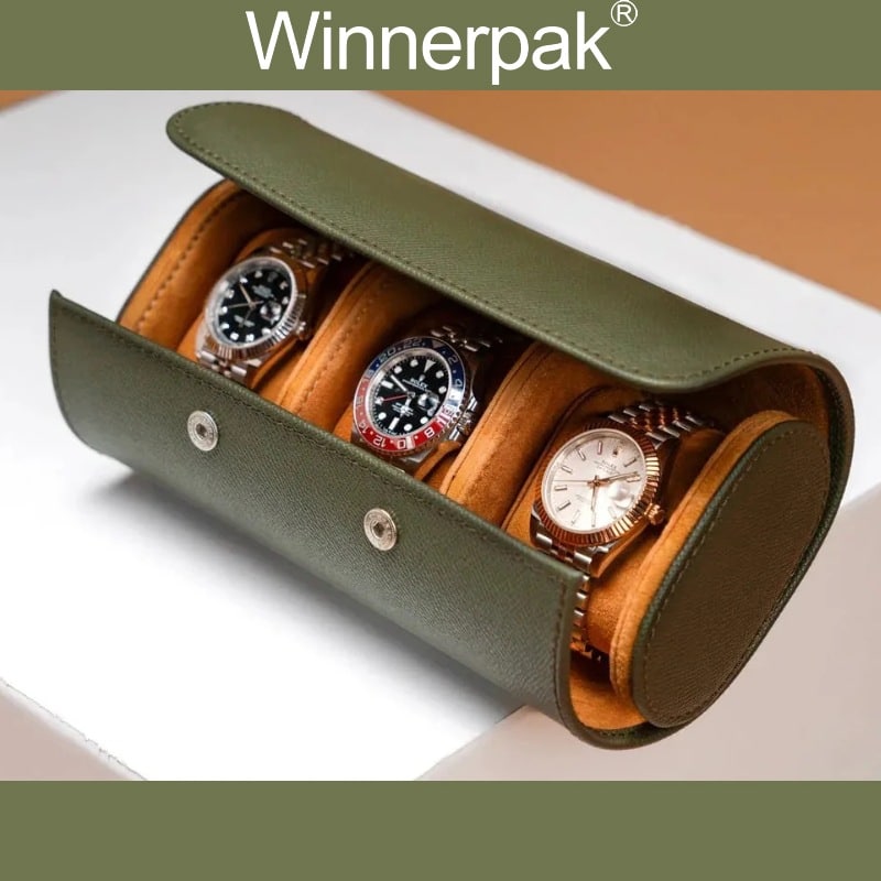 A: Absolutely. This is our most popular watch roll for guys. We may wrap the roll in a matching 2-piece gift box with your logo to provide a complete unboxing experience.