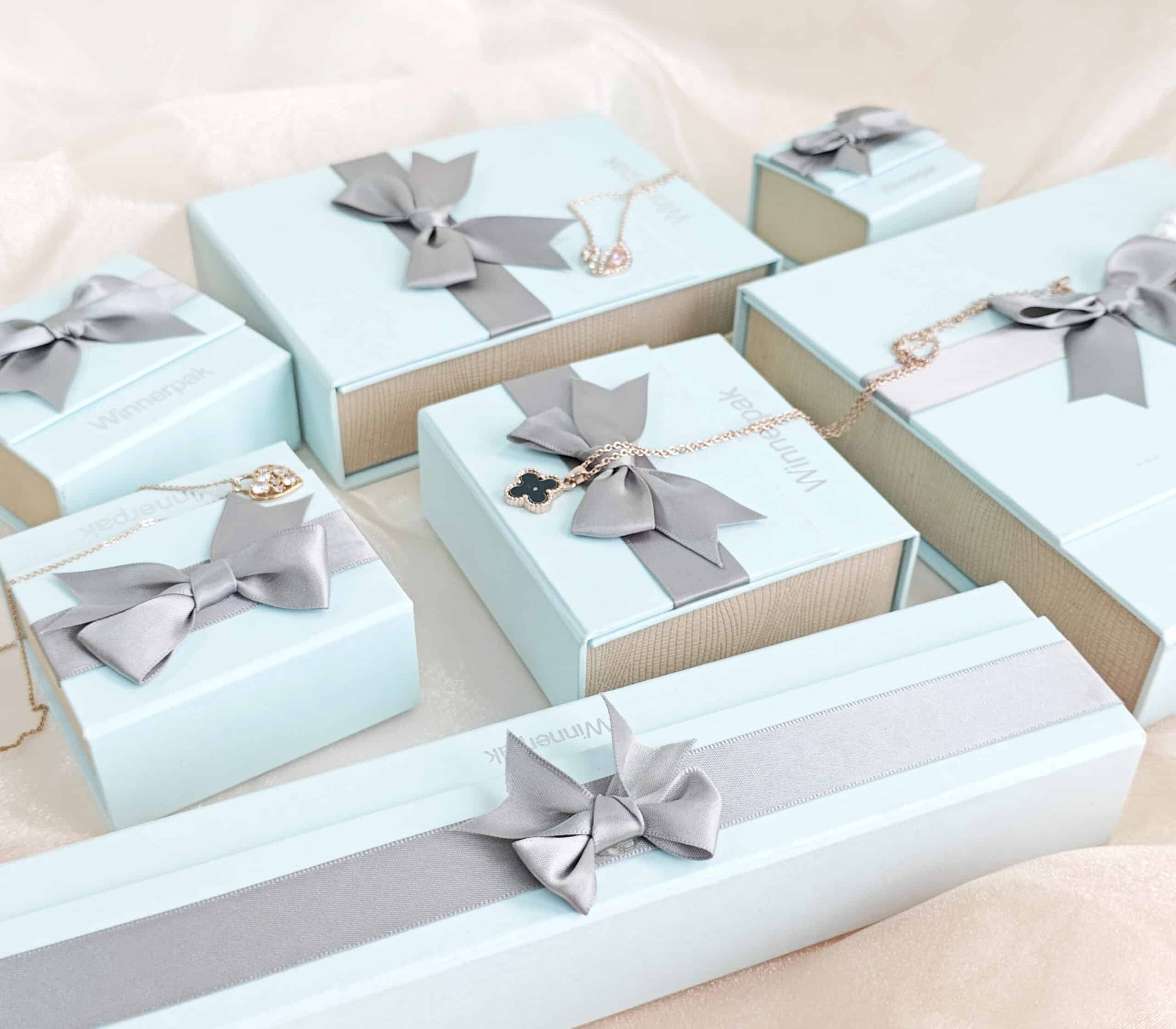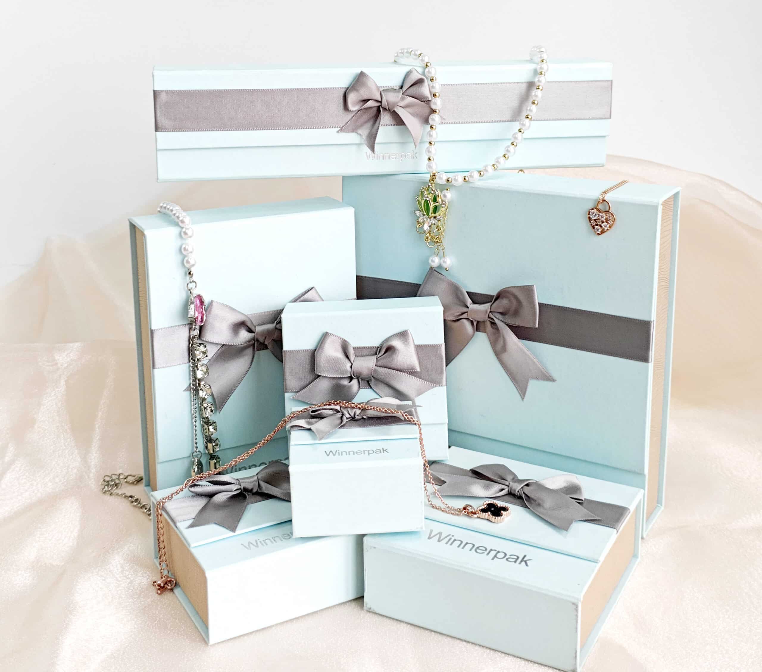 Winnerpak’s BBXP paper box line is a premium rigid jewelry packaging solution for modern businesses seeking a gift-ready appearance, powerful protection, and simple customisation. The BBXP series has a book-style flip-top structure, a hidden magnetic closing, and a satin ribbon bow, resulting in a consistent luxury unboxing experience across all box sizes.