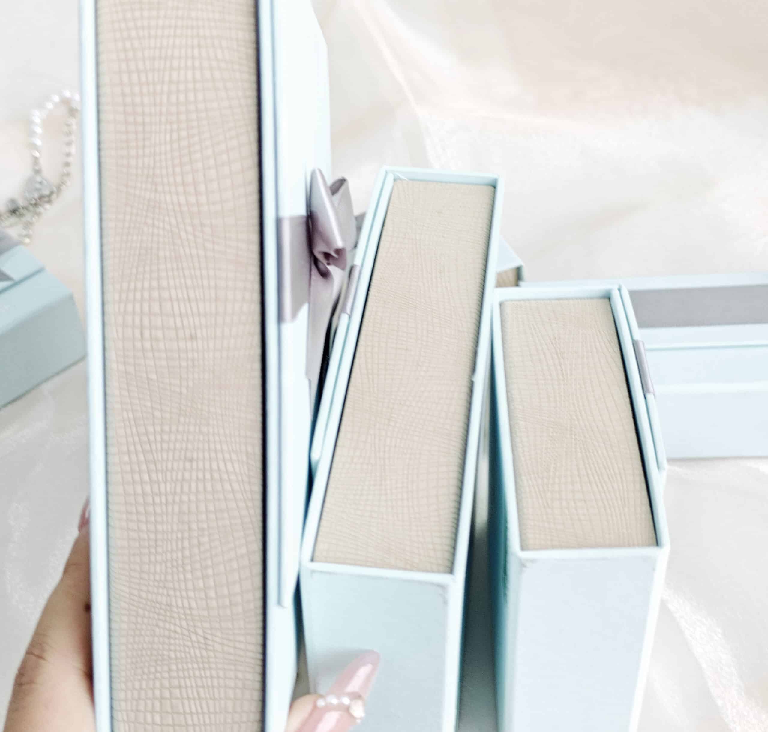 Jewelry set boxes for collection, display, and giving.