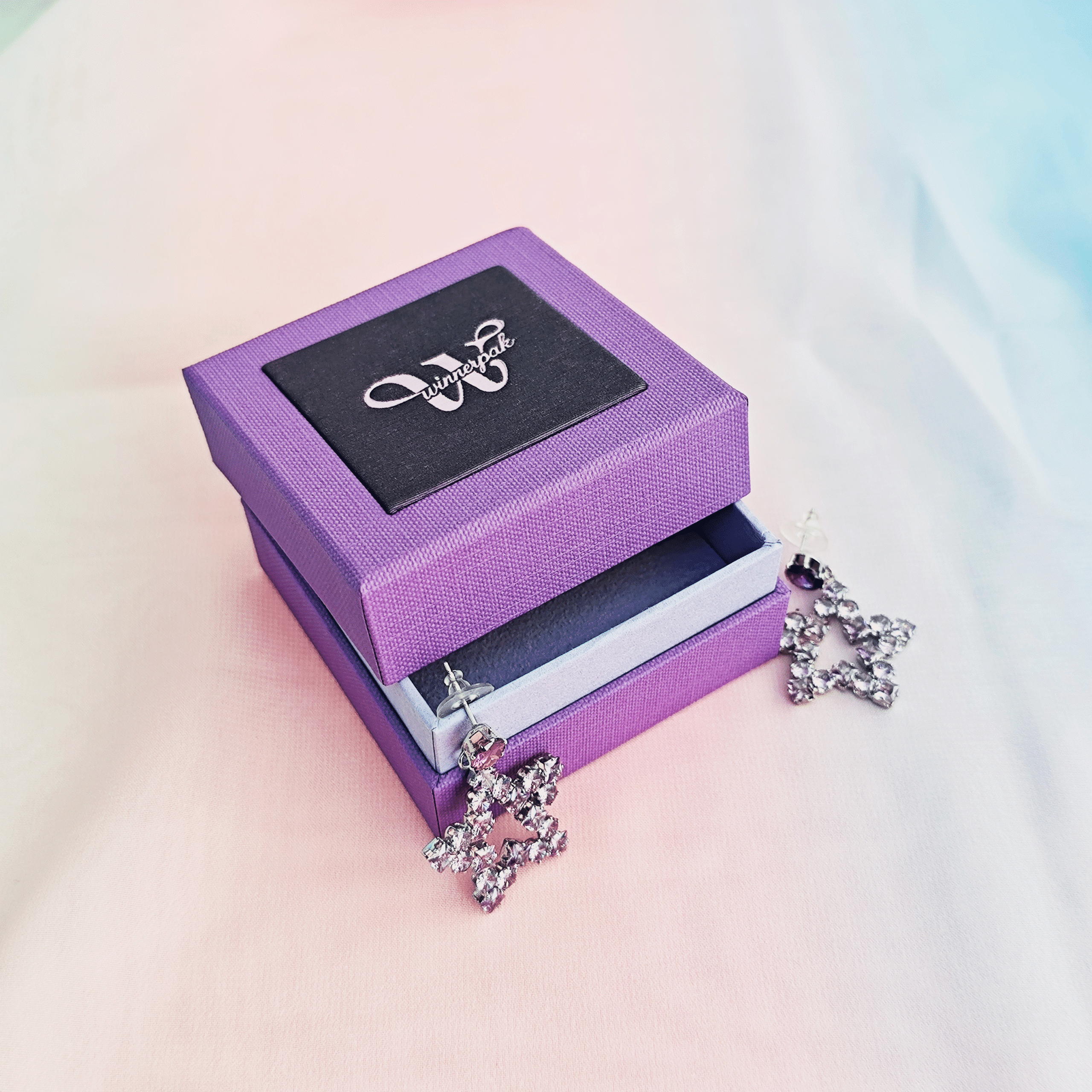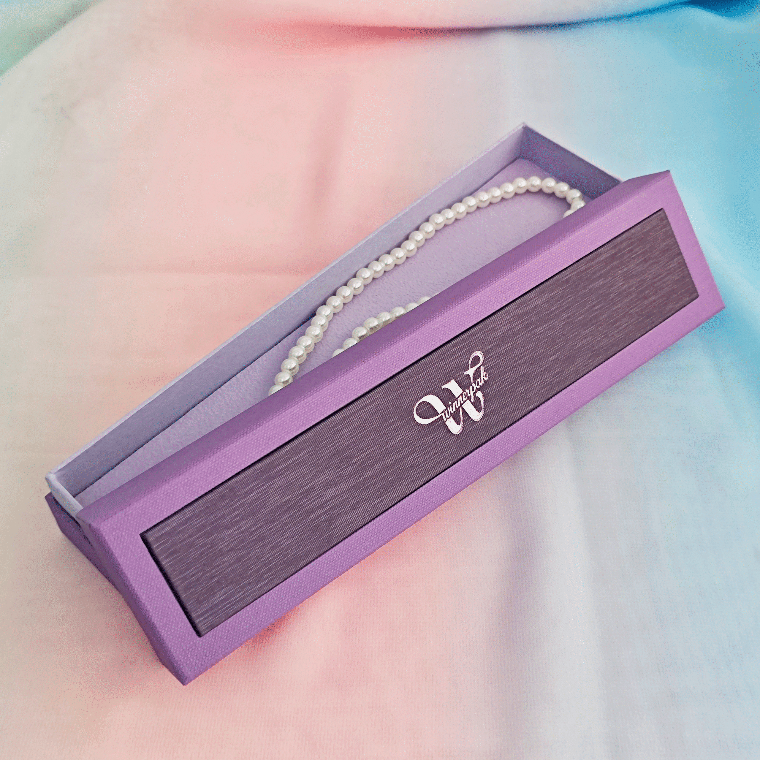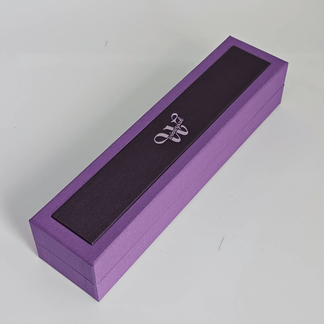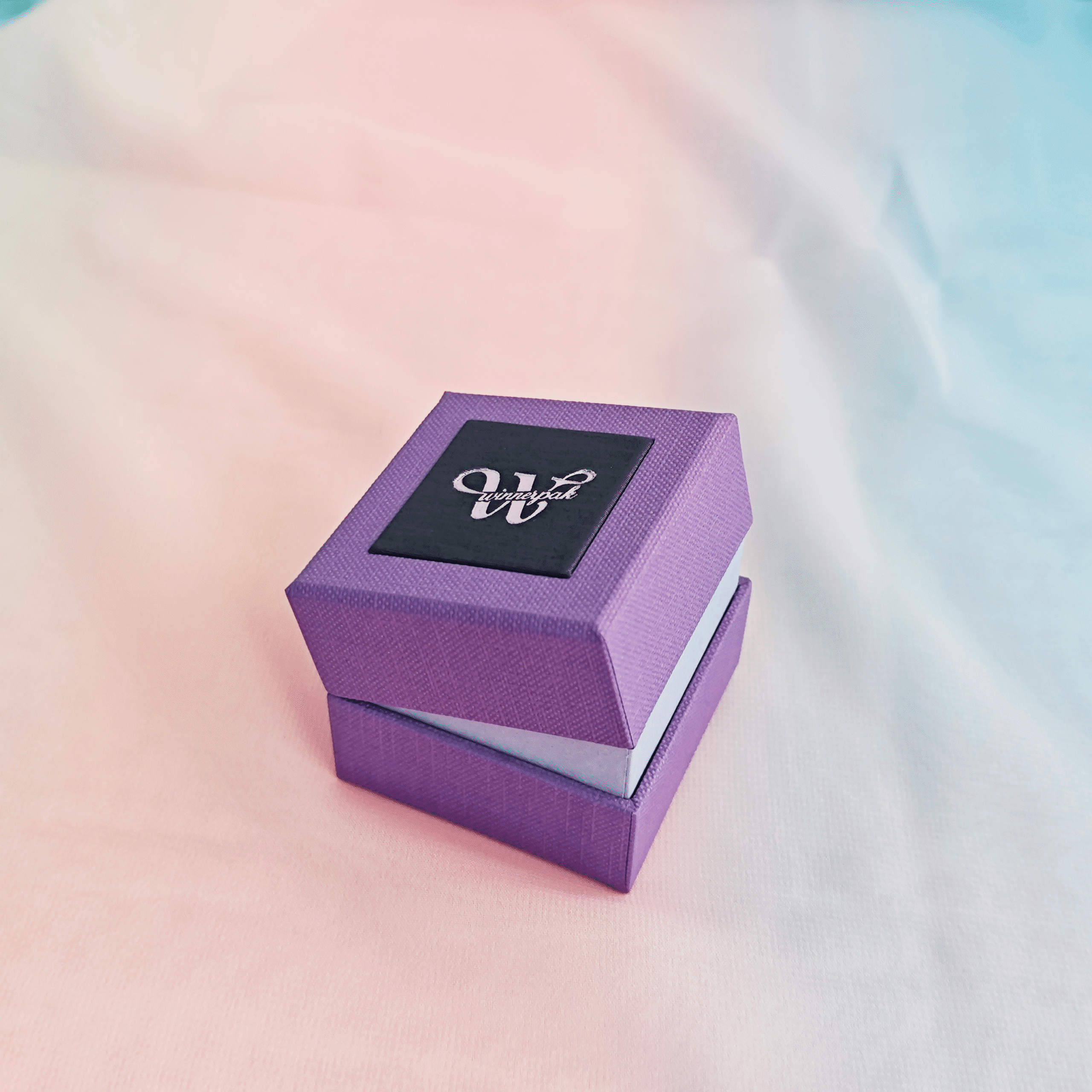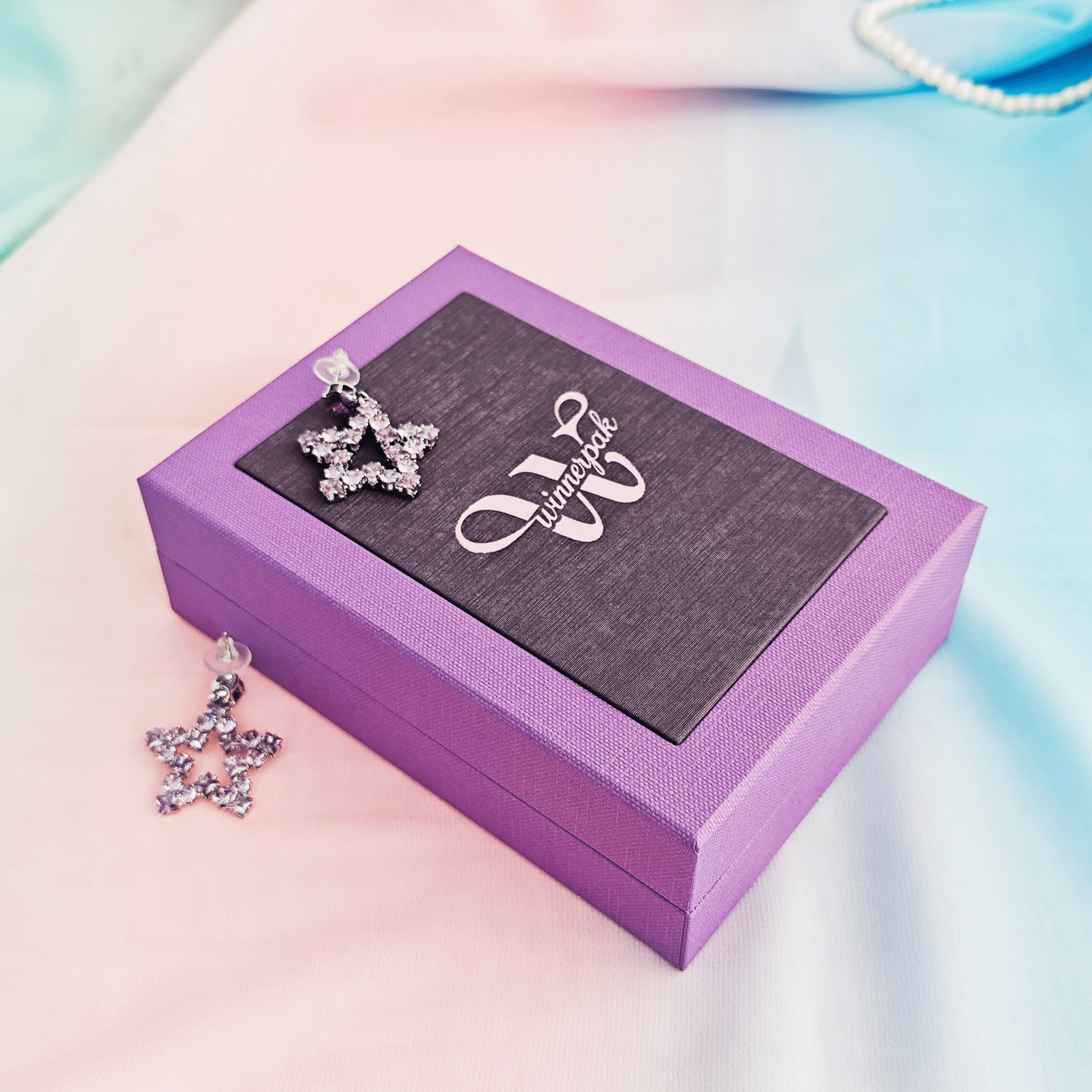 The Winnerpak DBTP-PL series instantly elevates your jewelry presentation with a luxury two-piece rigid cardboard paper box wrapped in purple fancy Oxford-texture embossed specialty paper and completed with a purple silk-leather (PU) branding pad centered on the lid. DBTP-PL is designed for retail display and giving, with a clean, modern appearance and a soft, protected interior.
