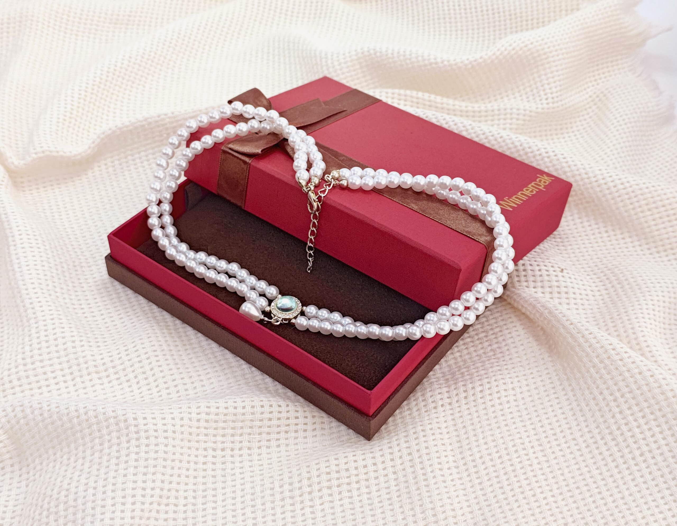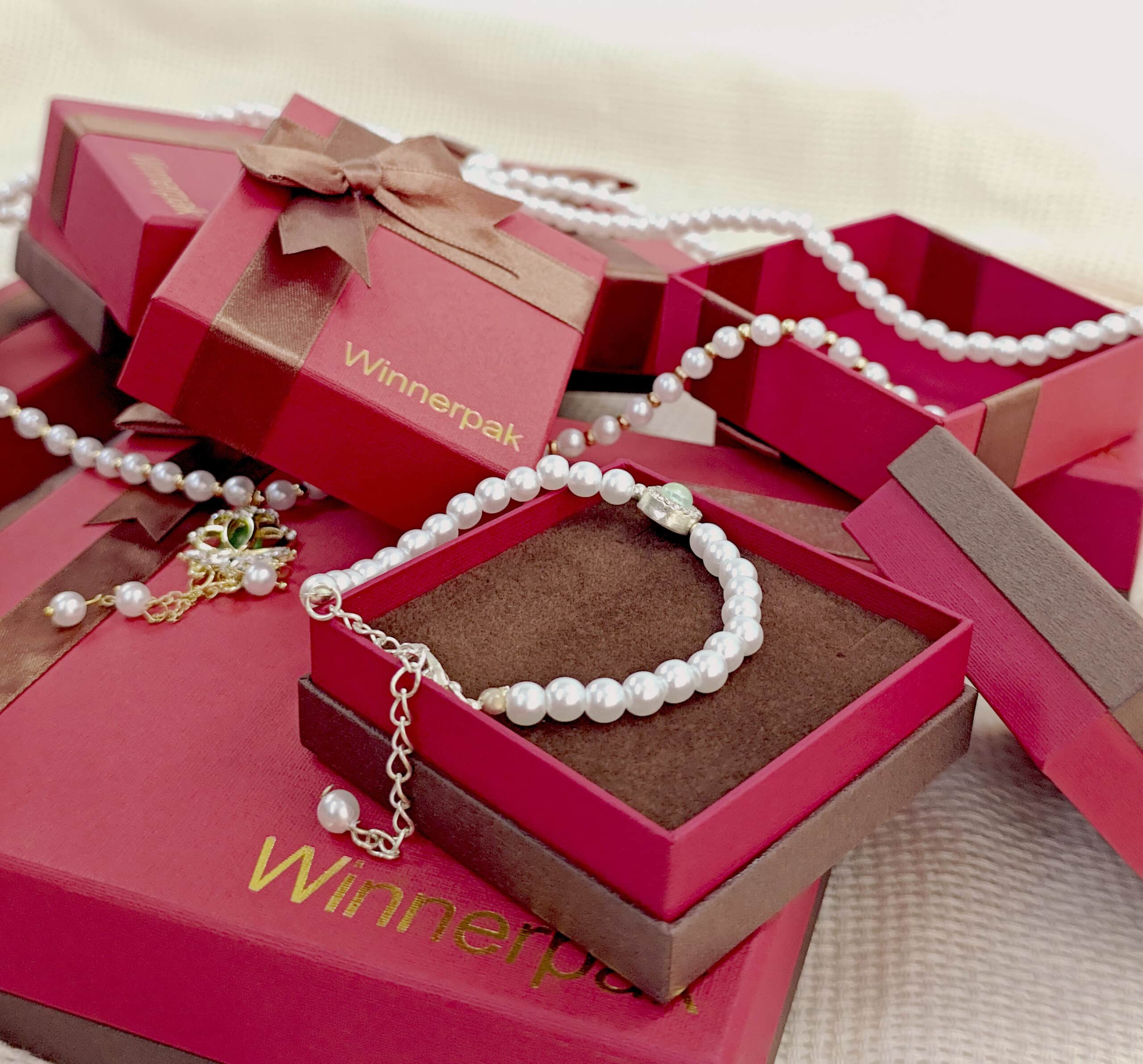 This red-and-brown series works well with pearl jewelry, bracelets, rings, necklaces, and full jewelry sets, making it suitable for retail counters, seasonal promotions, and premium brand packaging.