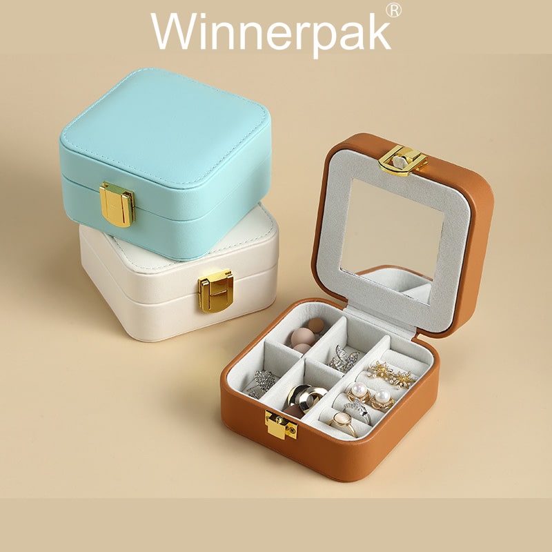 Portable 2 layers jewelry case with Metal Lock & Mirror