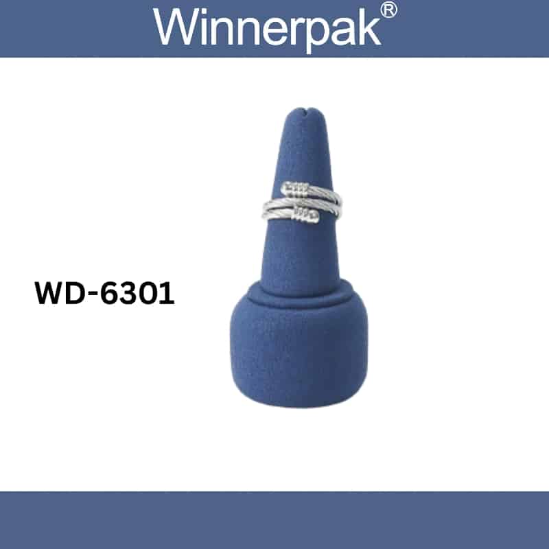 | WD‑6301 | Ring Cone Stand | 4 × 4 × 7.5 | 70 | EVA + MDF | Navy Blue Suede | Single ring upright display |