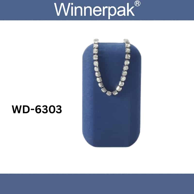| WD‑6303 | Small Pendant Display | 6.5 × 4 × 11 | 145 | EVA + MDF | Navy Blue Suede | Necklace / Pendant display board |