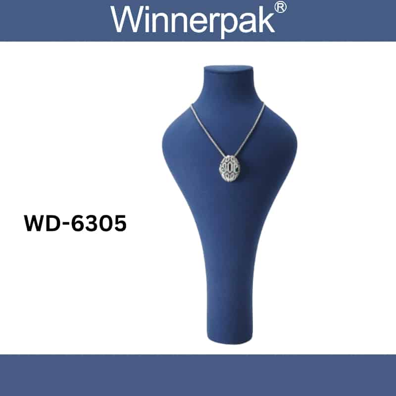 | WD‑6305 | Bust Display Stand | 16 × 12 × 34 | 790 | EVA + MDF | Navy Blue Suede | Classic bust for necklace sets |