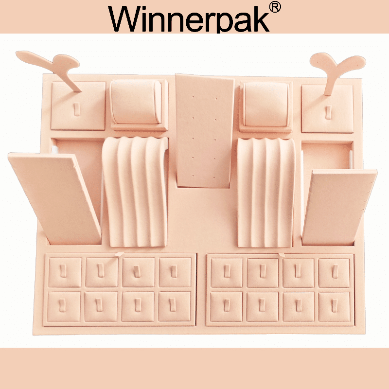 A high-end visual merchandising solution for jewelry brands, retail stores, and exhibitions is the Winnerpak N-Series Jewelry Display Set. This display system combines practical versatility with aesthetic appeal. It is constructed with a sturdy MDF core and draped in soft, premium pink microfiber fabric.