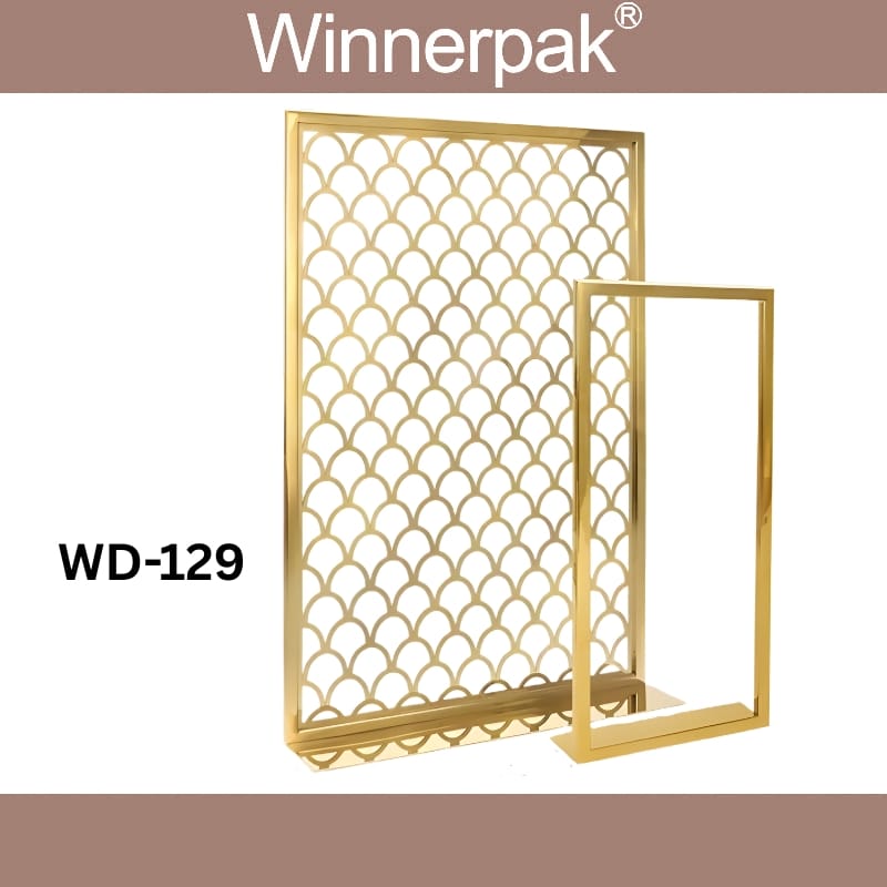 | 19 | WD‑129 | Gold Metal Back Panel Set | 33×7×48 + 15×5×33 | Dual metal backdrop frames for a window or counter setup |
