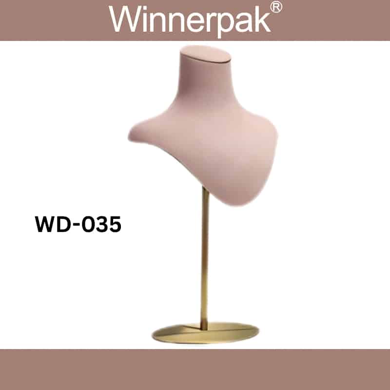 | 17 | WD‑35 | Pink Velvety Small Metal Bust | 15×37–53 | Adjustable bust display for long necklaces |