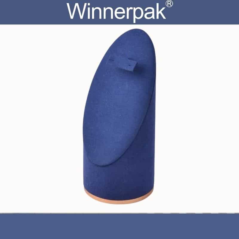 Winnerpak’s Jewelry Window Display Set L is an upscale jewelry display option made for showroom windows and upscale retail establishments. Each piece has a smooth, sophisticated appearance and is wrapped in plush navy blue microfiber suede. A sophisticated metallic accent is added by the optional rose gold stainless steel plated base, which improves the overall solidity and opulent appearance.