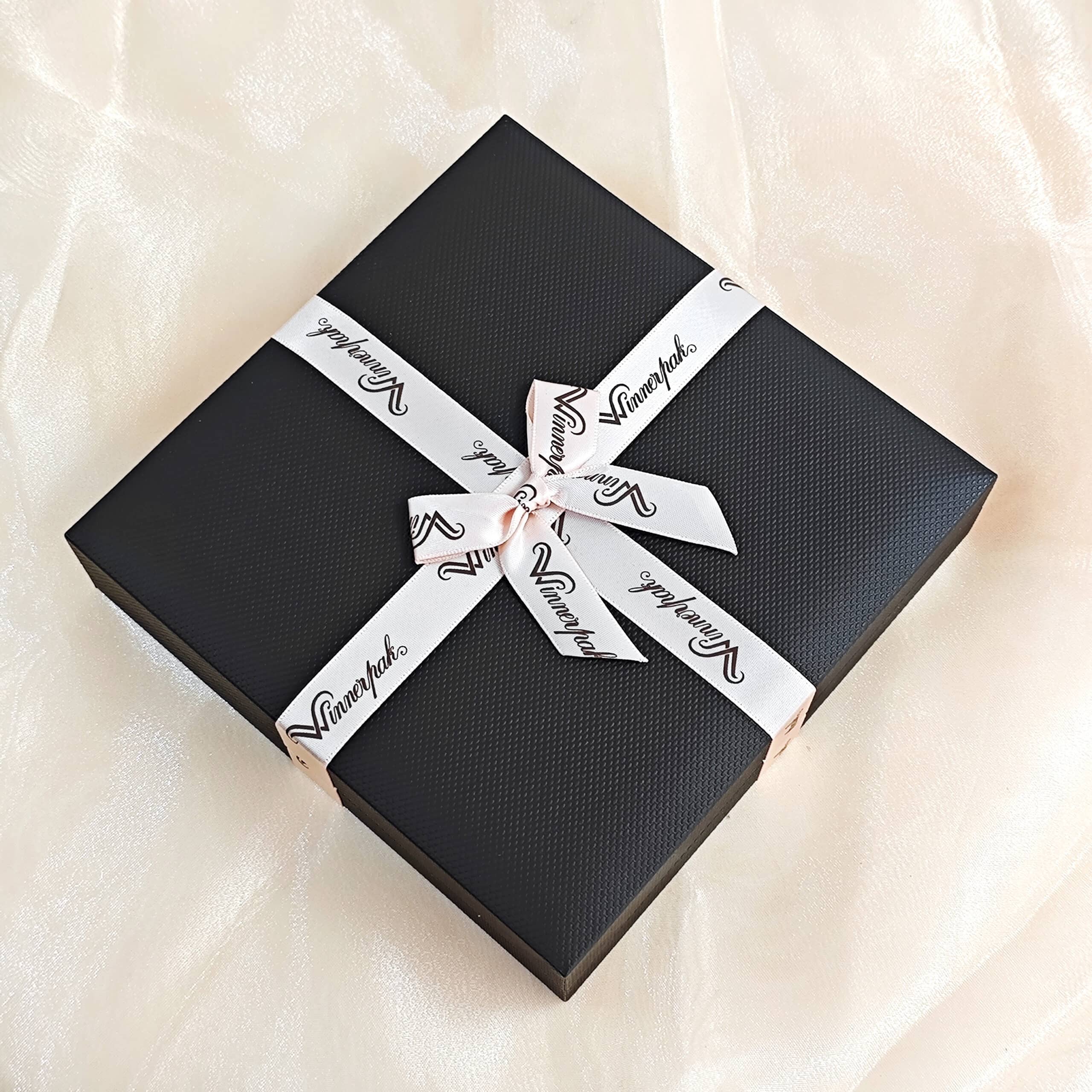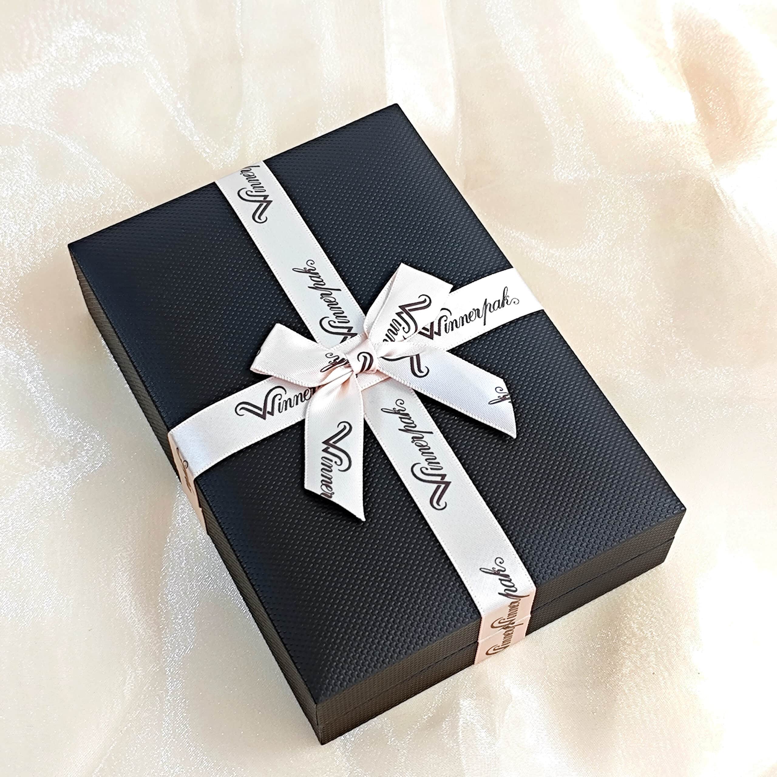 Mix & match the box color, ribbon color, and logo style.