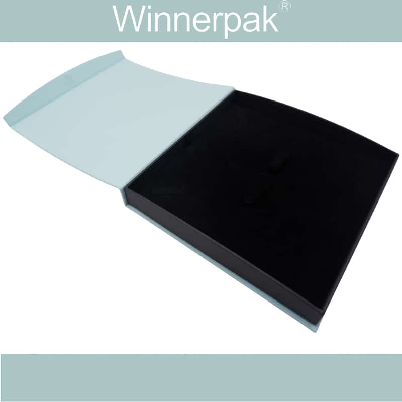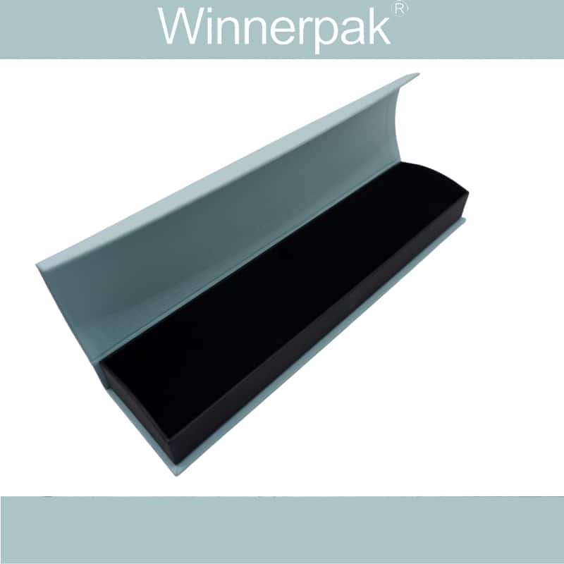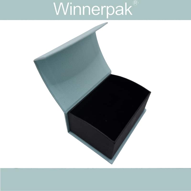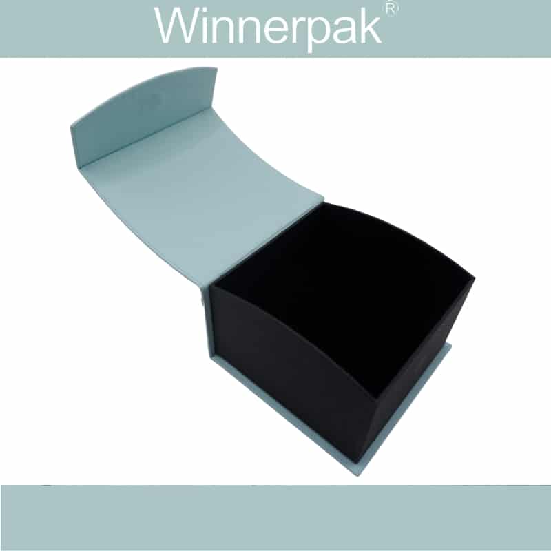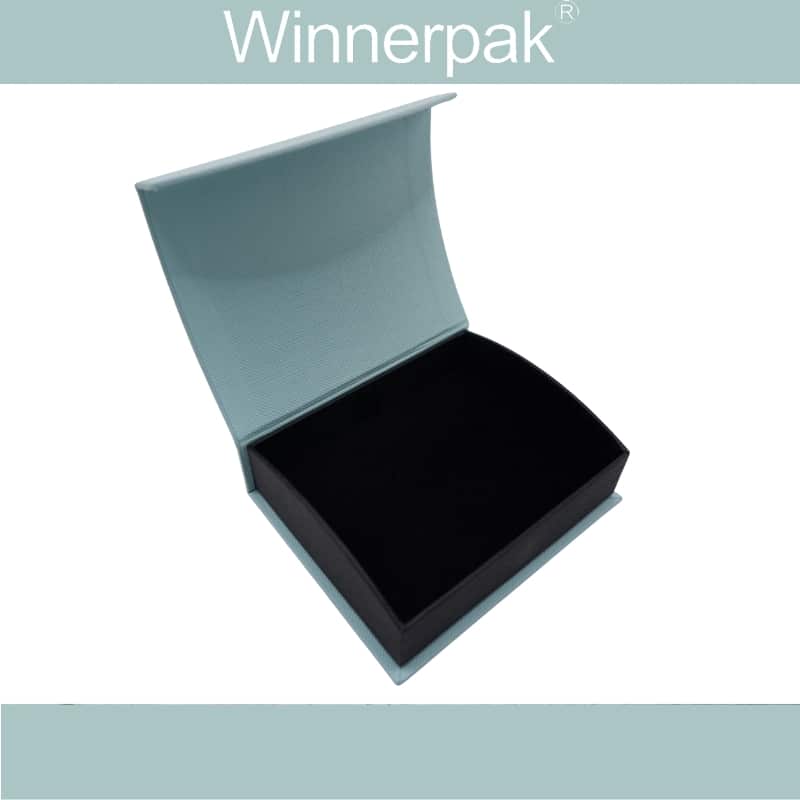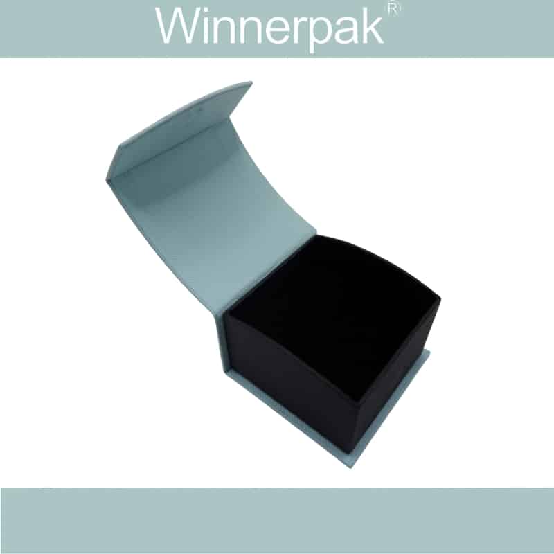 The Winnerpak TULP-NJ Series is a high-end series of stiff paper and cardboard jewelry boxes created for brands seeking a clean, modern appearance with a distinct form. This series, with its curved (arched) top lid, smooth magnetic latch, and high-contrast turquoise exterior with black velvet interior, provides both visual impact and professional protection.