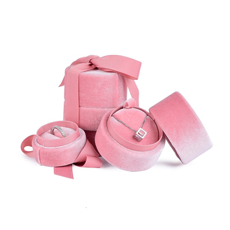Plastic Frame Velvet Box with Cylindrical Shape.
