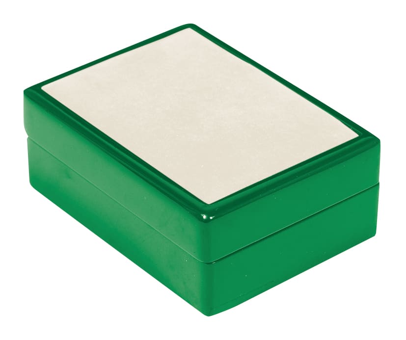 Square wooden box with velvet/leatherette top face.