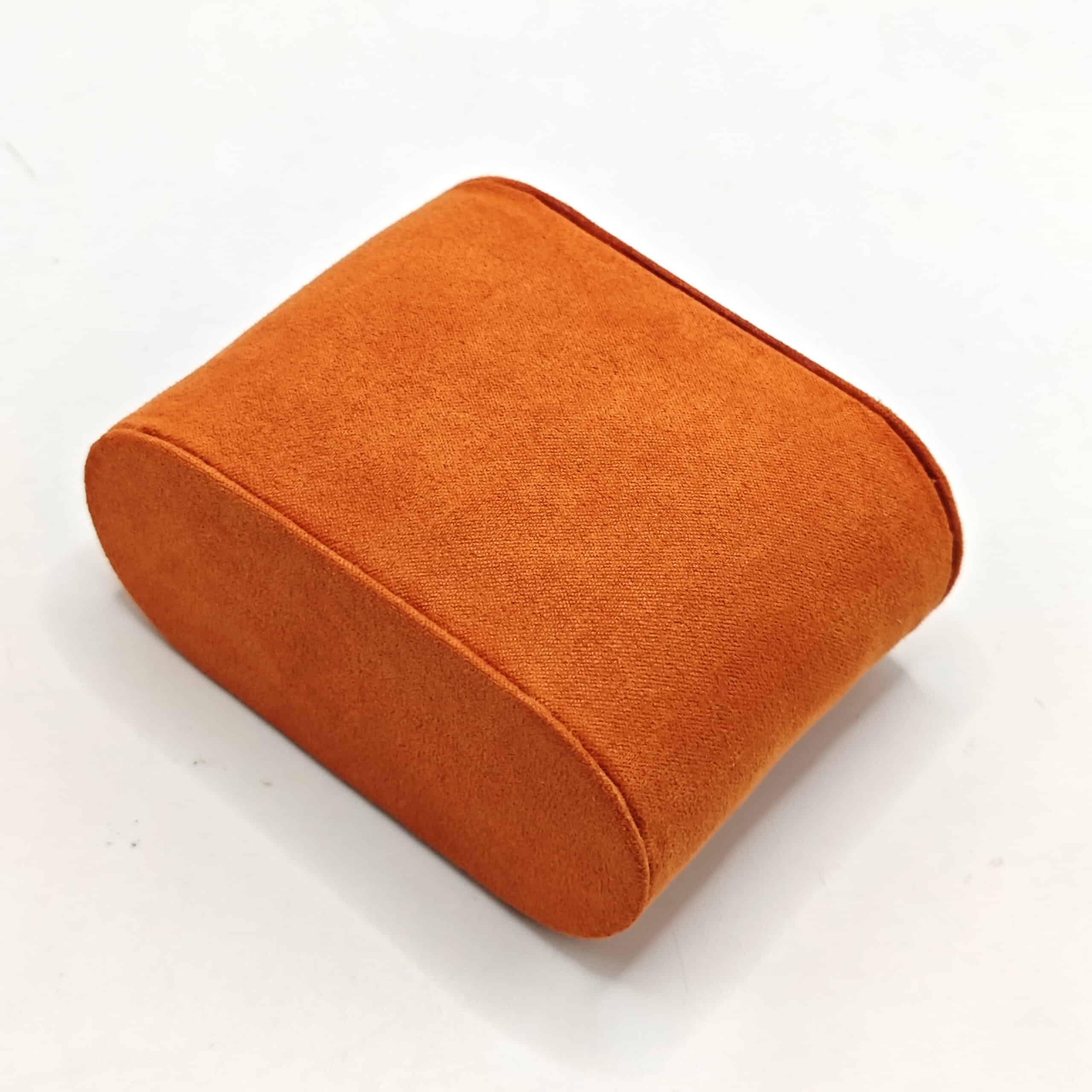 Velvet Interior: Movable orange soft suede tray with a matching suede cover on top, cradling six timepieces in velvety luxury and protecting them from direct damage and dust.