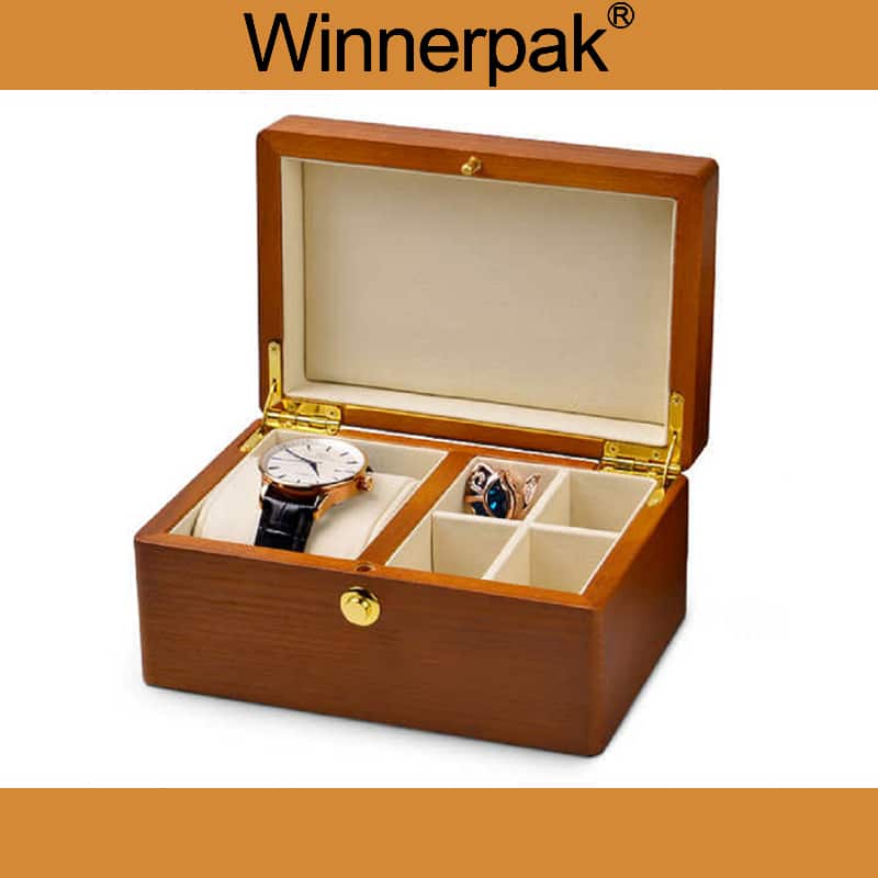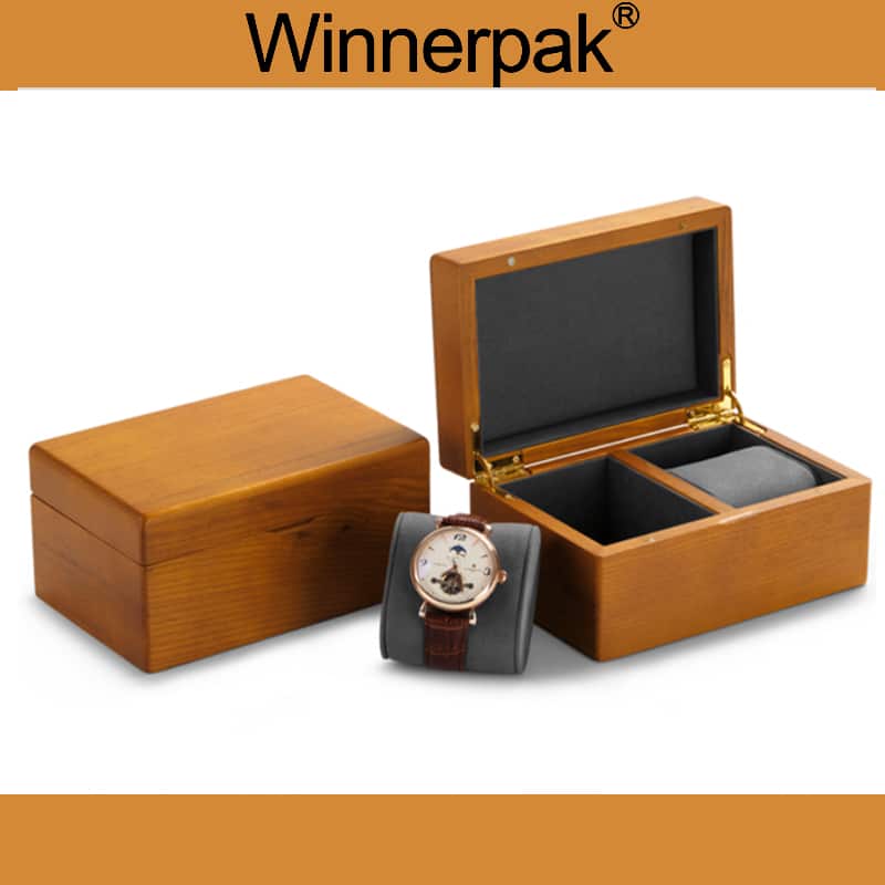 Solid wood watch set box with a matte finish.